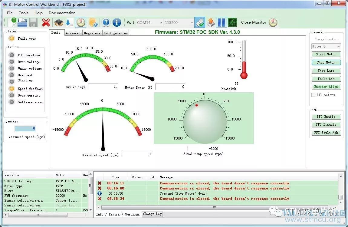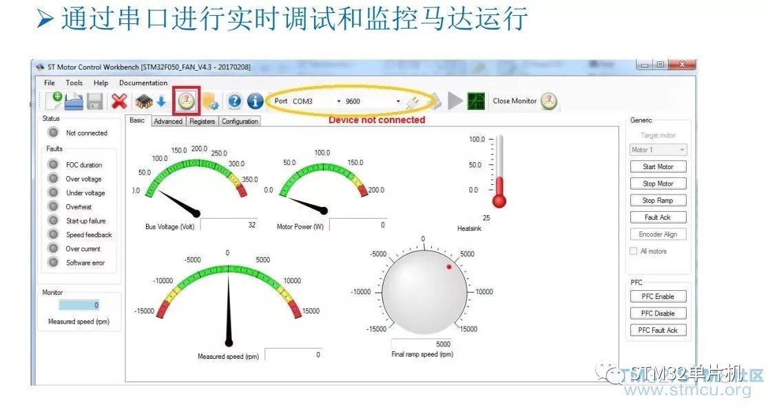 3)出厂已经有程序,或者自己找到安装目录中的程序进行下载,完成后可以使用上位机进行连接控制电机启动