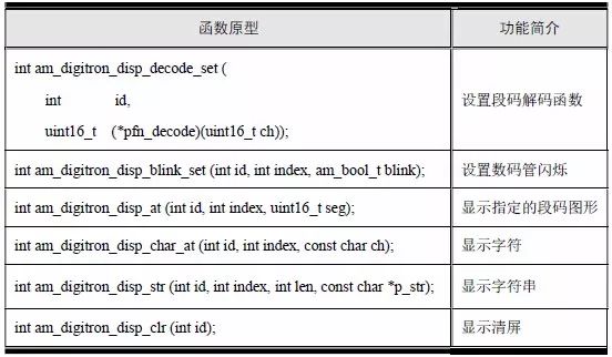 表8.8 数码管通用接口(am_digitron_disp.h)