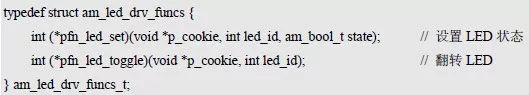 读者可能会发现,在实现LED 接口时,定义的抽象方法同时包含了p_cookie 和led_id参数。即: