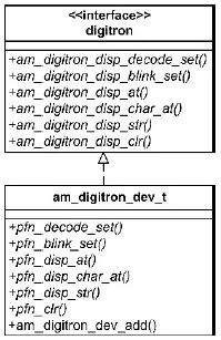 基于此,根据其它通用数码管通用接口,为它们一一定义相应的抽象方法,并将其存放在一个虚函数表中,即: