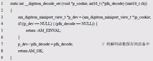 其中,p_dev 为指向am_digitron_miniport_view_t 类型实例的指针,p_info 为指向am_digitron_miniport_view_info_t 类型实例信息的指针,其调用形式如下: