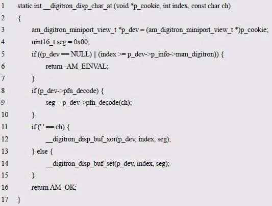 基于此,am_digitron_disp_char_at()函数的实现详见程序清单8.44。