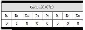 寄存器CmdBuf0(地址:07H)和CmdBuf1(地址:08H)共同组成命令缓冲区。通过向命令缓冲区写入相关的控制命令可以实现段寻址、下载显示数据、控制闪烁等功能。