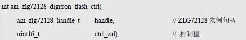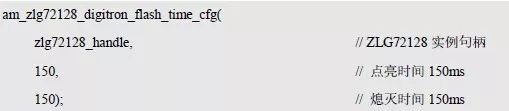 注:仅设置闪烁时间还不能立即看到闪烁现象,必须打开某位的闪烁开关后才能看到闪烁现象,详见am_zlg72128_digitron_flash_ctrl()函数介绍。