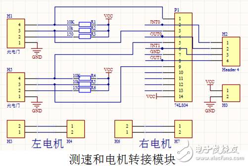 每个电机尾部都有两个光电门用以测速,光电门输出信号经反向器输出后更稳定可靠。电机接线用转接板转接有利于保护电机接线。