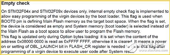 先来回顾一下STM32F091 的参考手册RM0091 对于Empty Check 的描述:
