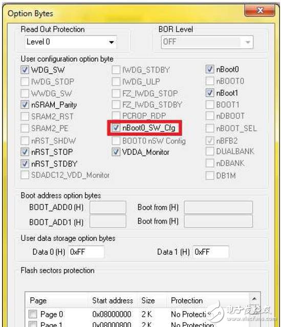 将Boot 启动配置为用选项字节进行控制,而不是使用Boot0引脚,以此来破坏查空机制的影响。