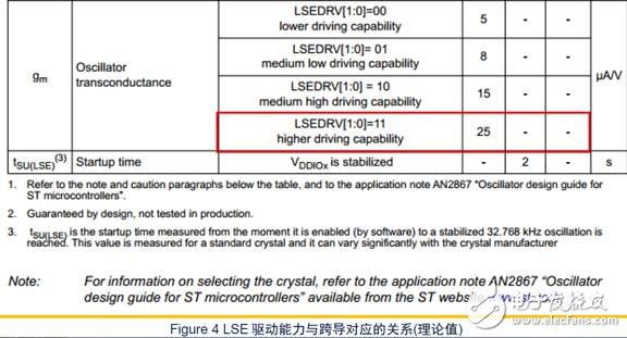 最终定位到LSE的驱动等级过高,在AN2867这个文档中,有这样的描述: