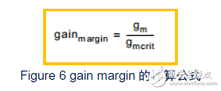 也就是要求gain margin的值要求大于5,这样晶振才能正常起振,那么gain margin又是如何计算的呢?接下来找到gainmargin 的计算公式,如下: