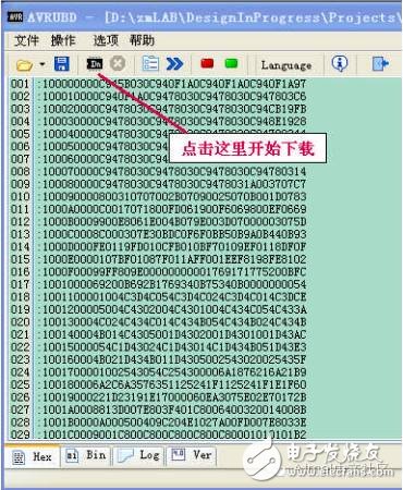 3) 载入要写到芯片中的 HEX 文件。 这一步是将你要下载到电路板的程序先装入电脑, 方法是点击
