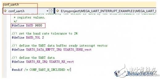 串口的例程可以在Atmel Studio6.1中找到,这里笔者编译、下载了一个UART interrupt example for the ATmega2560例程。问题又来,波特率没有明说该设置多少,笔者是在代码中找到的,可能是Atmel公司想教我们一个道理“自己动手,方能丰衣足 食。”可惜笔者未能好好参透,还是喜欢一条龙服务,是不是有点不上进啊。