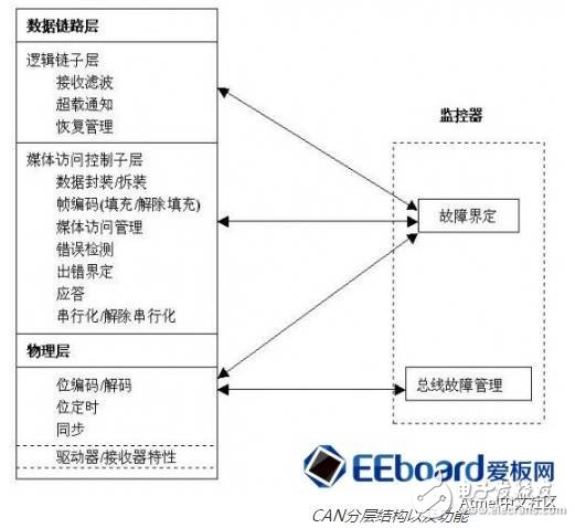 CAN主要的三层结构为:物理层、数据链路层、应用层。
