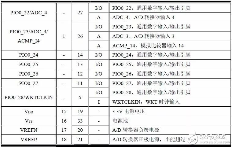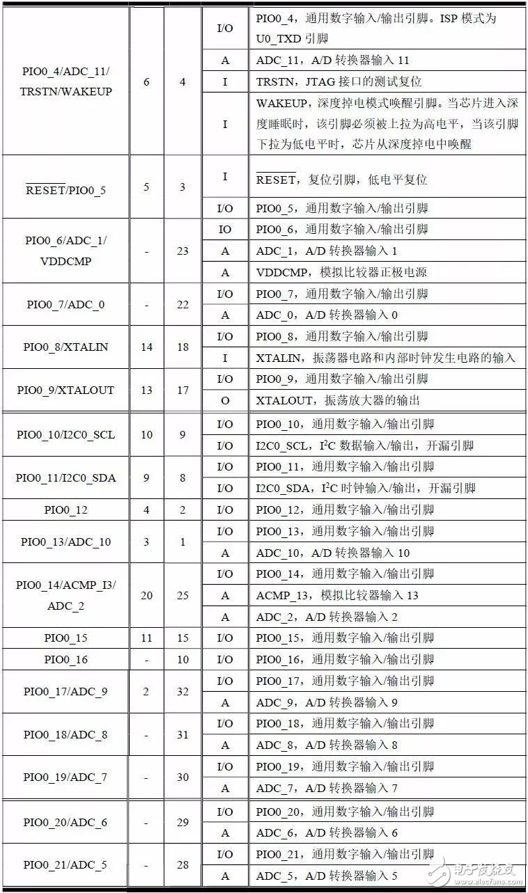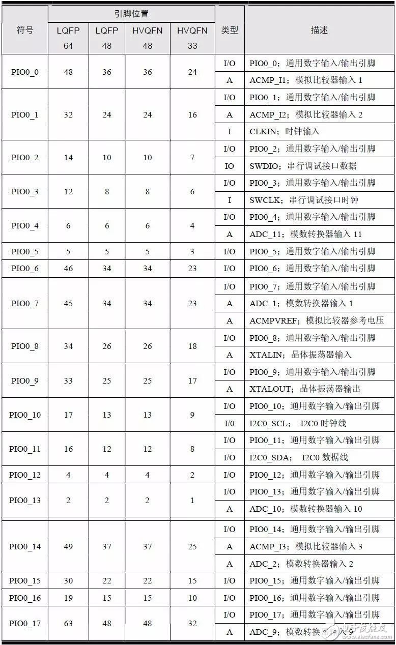 LPC84x 系列MCU 提供4 中不同的封装,可以根据不同需求进行合理选择,详见表1.3。