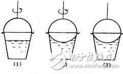 用长绳吊一水桶,让它旋转至绳扭紧,然后将水注入,水与桶暂时都处于静止中,这时显然液面水平。再突然使桶反方向旋转,刚开始的时候水面并未跟随着运动,此时水面仍然水平。但是后来,桶逐渐把运动传递给水,使水也开始旋转,就可以看到水渐渐离开其中心而沿桶壁上升形成凹面。运动越快,水升的越高。倘若此时突然让桶静止,水由于惯性仍将旋转,此时的液面仍为凹面。牛顿认为,水面的下凹,不是由水对周围的相对运动造成的,而是由水的绝对的、真正的圆周运动造成的,因此由水面的下凹就可以判断绝对运动的存在。这一思想实验,是牛顿为了论证绝对空间的存在而设计出来的。然而,众所周知,牛顿的绝对时空观其实是错误的,也就是说这一思想实验其实是个失败的例子。这一谬误,在100多年之后才被哲学家兼物理学家马赫所指出。马赫认为,水面的凹陷,并不是由于水相对于“绝对空间”的运动,而是由于相对宇宙间的所有其他物体的运动,这些其他所有物体通过引力对水施加了作用。其中起决定性作用的物体则是遥远的天体,正是遥远的天体的“参考系拖拽”作用使得相对于它们旋转的液面发生了凹陷。马赫认为并不存在绝对空间,所有参考系等价。倘若能够使水面保持静止,而让所有遥远天体一同旋转,按照马赫的观点,静止水面将产生凹液面。我们显然无法做这样的实验,但是如果用几公里厚的水桶做上面的水桶实验,则人们便不能肯定牛顿对液面的平凹的判断了。。后来,马赫的观点对爱因斯坦发明广义相对论产生了决定性的影响,马赫原理本身也随着广义相对论的逐渐证实而得到了广泛认可。