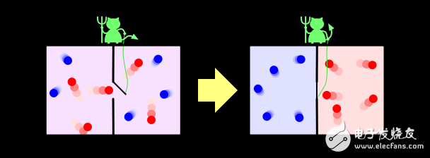 中学时我们都曾学过热力学第二定律(熵增原理):孤立系统的不可逆过程熵总是在增加。“落叶永离,覆水难收;欲死灰之复燃,艰乎其力;愿破镜之重圆,冀也无端;人生易老,返老还童只是幻想;生米煮成熟饭,无可挽回...”这些都是熵增原理在实际生活中的反应,它现在也已经成为了物理学中最牢不可破的原理之一。然而当年麦克斯韦却曾提出过一个对熵增原理的诘难,非常令人困惑:一个绝热容器被分成相等的两格,中间是由“麦克斯韦妖”控制的一扇小“门”,容器中的空气分子作无规则热运动时会向门上撞击,“门”可以选择性的将速度较快的分子放入一格,而较慢的分子放入另一格,这样,其中的一格就会比另外一格温度高,系统的熵降低了。可以利用此温差,驱动热机做功,而这是与热力学第二定律相矛盾的。对于这个诘难的反驳,可并不是一件轻松的事情。有人可能以为麦克斯韦妖在打开、关闭门的时候需要消耗能量,这里产生的熵增会抵消掉系统熵的降低。然而开关门消耗的能量却不是本质的,它可以任意降低到足够小。对于麦克斯韦妖的真正解释,直到20世纪才被揭开。关于熵的问题向来比较难懂,因此我直接引用赵凯华先生在《新概念力学·热学》中的话:“麦克斯韦妖有获得和存储分子运动信息的能力,它靠信息来干预系统,使它逆着自然界的方向进行。按现代的观点,信息就是负熵,麦克斯韦妖将负熵输入给系统,降低了它的熵。那么,麦克斯韦妖怎样才能获得所需的信息呢?它必须有一个温度与环境不同的微型光源去照亮分子,这就需要耗费一定的能量,产生额外的熵。麦克斯韦妖正是以此为代价才获得了所需的信息(即负熵)的,这额外熵的产生补偿了系统里熵的减少。总起来说,即使真有麦克斯韦妖存在,它的工作方式也不违反热力学第二定律。”