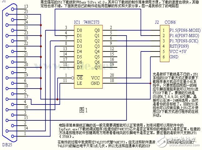 结论:各种方案都差不多,但在布线上,原来总是把元件装在并口盒内,而留一段连线到AT89S51 板上的想法是错误的。应尽量把从HC373 到AT89S51 板上的连线做短,最好HC373 就做在板子上,因为HC373 是三态输出,停用时OE 端是高电平,输出是高阻抗的,对系统板的独立性是没有影响的。而留的线应该是从PC 机到HC373 的并口线,这样的下载线作为自制来说才能有点实用价值。
