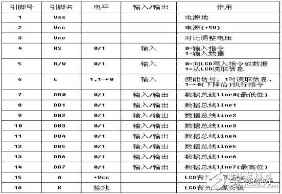 LCD1602 已很普遍了,具体介绍我就不多说了,市面上字符液晶绝大多数是基于HD44780 液晶芯片的,控制原理是完全相同的,因此HD44780 写的控制程序可以很方便地应用于市面上大部分的字符型液晶。字符型LCD 通常有14 条引脚线或16 条引脚线的LCD,多出来的2 条线是背光电源线VCC(15 脚)和地线GND(16脚),其控制原理与14 脚的LCD 完全一样,定义如下表所示: