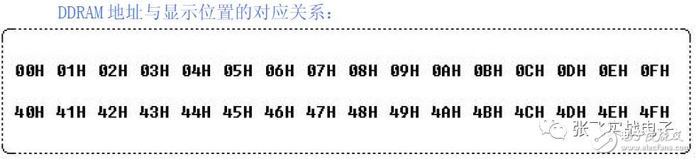 DDRAM 就是显示数据RAM,用来寄存待显示的字符代码。共80 个字节,其地址和屏幕的对应关系如下表: