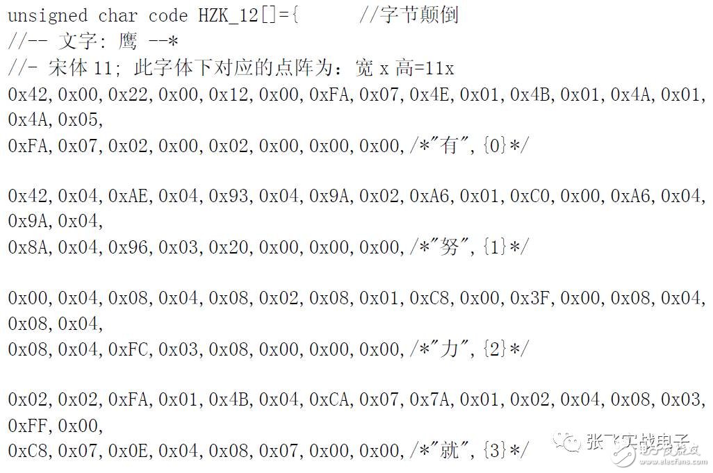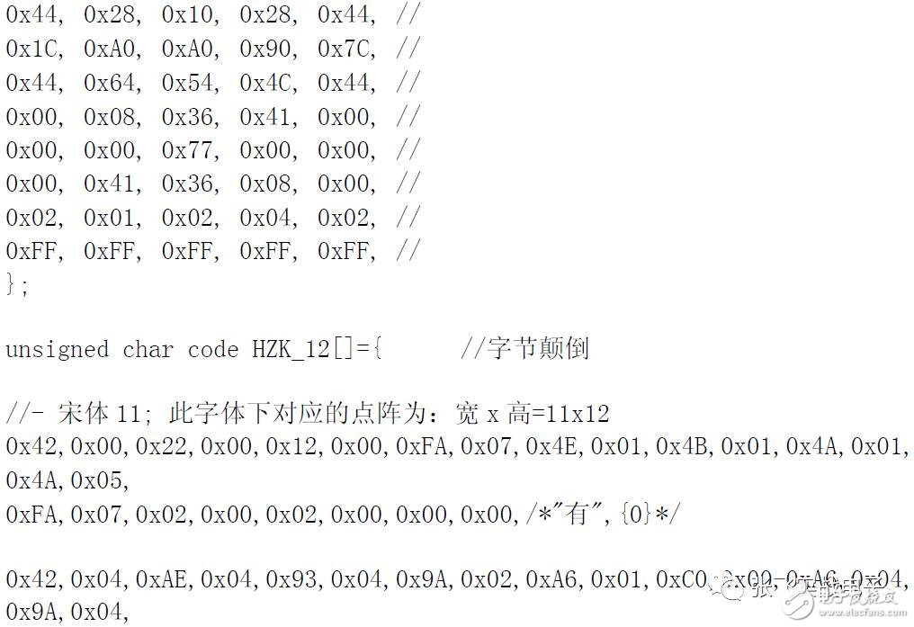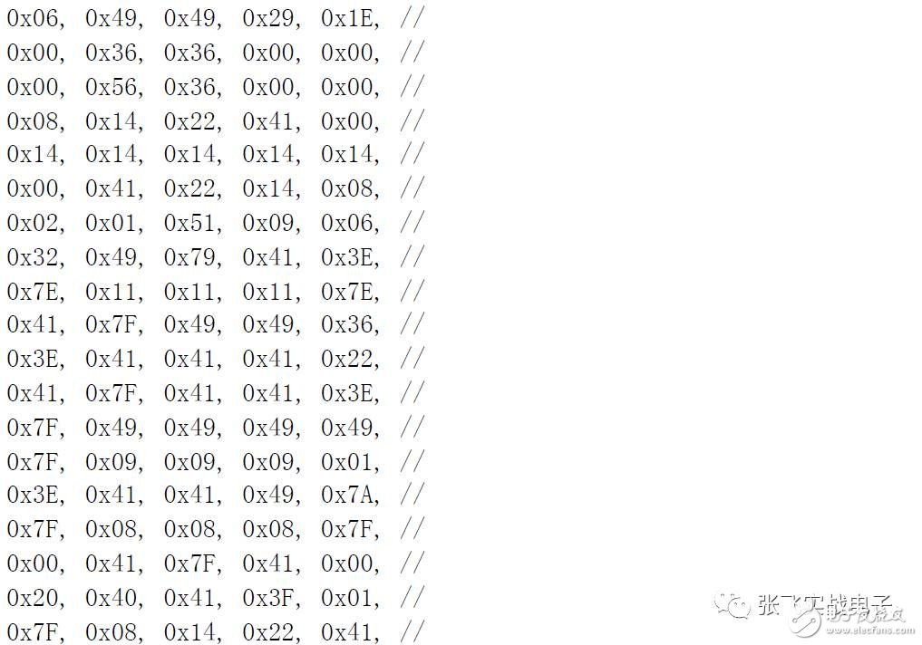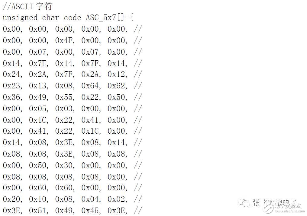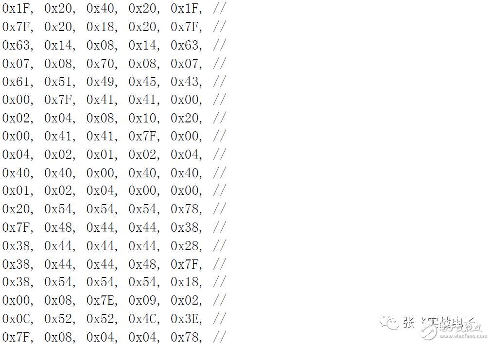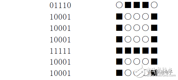 我们知道文本文件中每一个字符都是用一个字节的代码记录的。一个汉字是用两个字节的代码记录。在PC 上我们只要打开文本文件就能在屏幕上看到对应的字符是因为在操作系统里和BIOS 里都固化有字符字模。什么是字模?就代表了是在点阵屏幕上点亮和熄灭的信息数据。例如“A”字的字模: