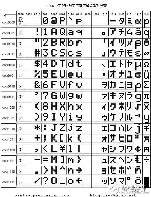 字符代码0x00~0x0F 为用户自定义的字符图形RAM(对于5X8 点阵的字符,可以存放8 组,5X10 点阵的字符,存放4 组),就是CGRAM 了。后面我会详细说的。