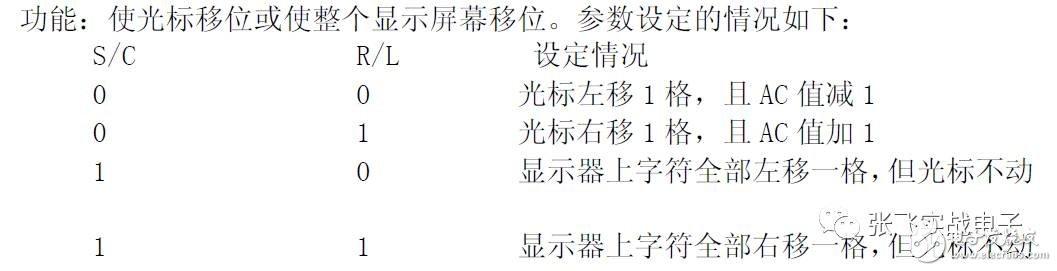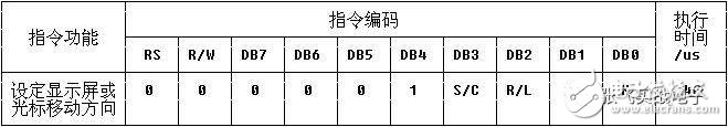 功能:设定每次定入1 位数据后光标的移位方向,并且设定每次写入的一个字符是否移动。参数设定的情况如下所示: