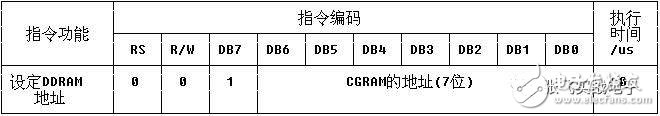 那么如何对DDRAM 的内容和地址进行具体操作呢,下面先说说HD44780 的指令集及其设置说明,请浏览该指令集,并找出对DDRAM 的内容和地址进行操作的指令。