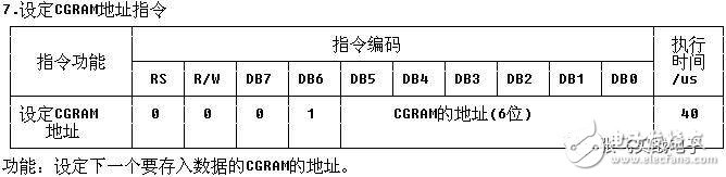 功能:设定下一个要存入数据的CGRAM 的地址。