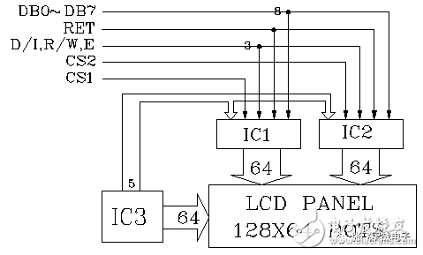 可以看出12864 屏是分为左、右两块控制的。所有对屏幕的操作要受片选CS1、CS2 来控制。
