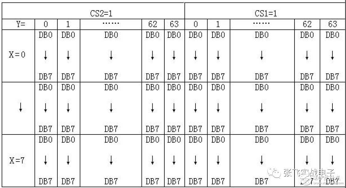 我们再来看一看对屏幕操作数据与屏幕点阵的排布关系:见下图。