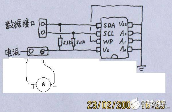 好!下面我们进行调试:插上主电源。但AT24C16 的电源短路帽不接,在短路帽两个针之间接上万用表的电流档检查是否有短路和静态电流的大小。实测静态电流几乎为零,改变两个数据线的电平时,电流会有所上升,说明电路基本正常。