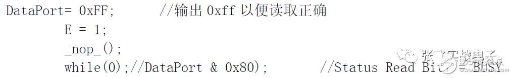 <1> 读取忙碌信号BF 的内容,BF=1 表示液晶显示器忙,暂时无法接收单片机送来的数据或指令;当BF=0 时,液晶显示器可以接收单片机送来的数据或指令;