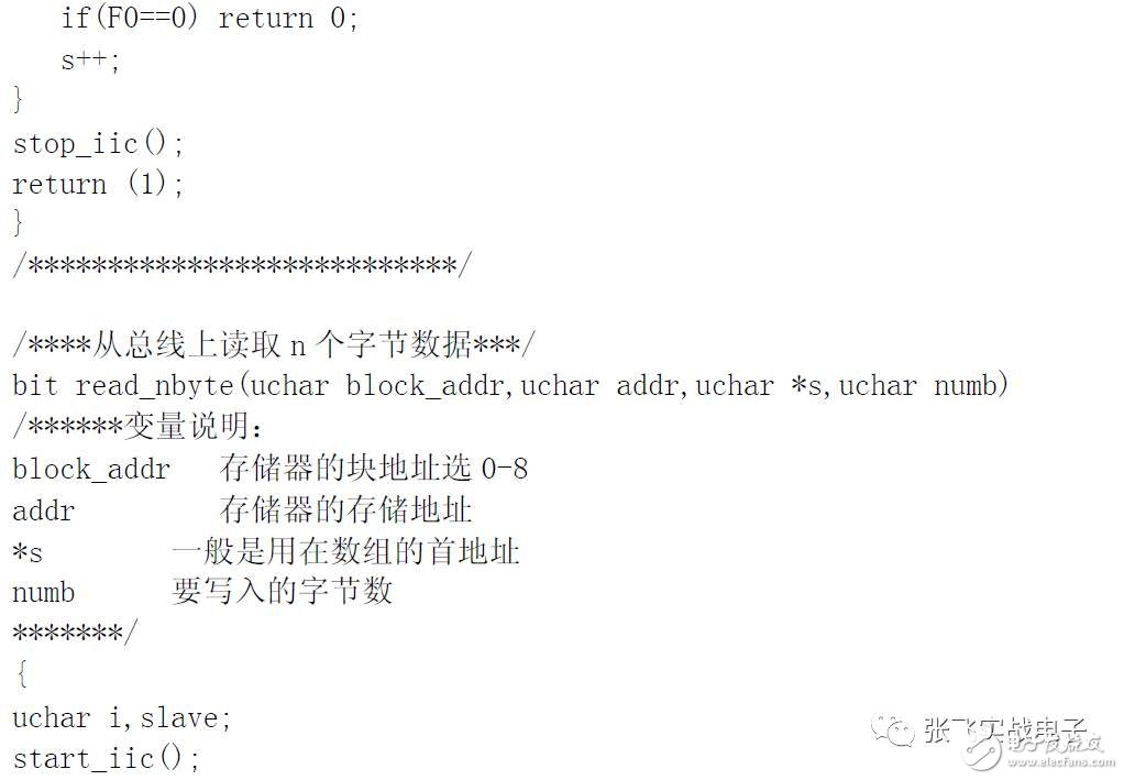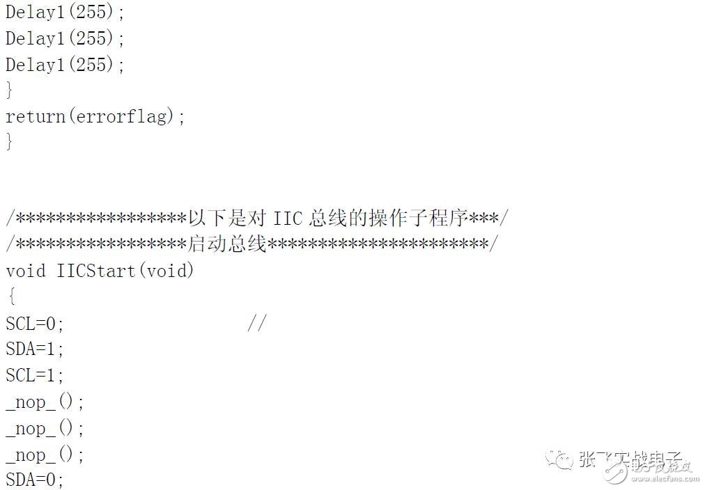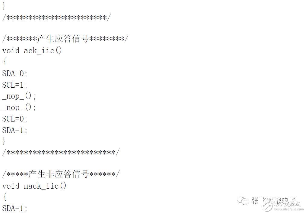 上面说过在发送完一个开始信号后接着发送一个字节的器件识别信号。这一个字节的4-7 位就是器件识别码。1010 就是对应E2PROM 器件,其它器件就不再理会了。1-3 位是器件的物理地址,也就是说如果是E2PROM,它可以在I2C 总线上挂接(000-111)8 个E2PROM。在这里就得详细说说AT24CXX 上的A0,A1,A2 和这个器件识别字节之间的关系了。上面说过存储器的寻址范围是一个字节,也就256 个,AT24C02 的存储容量为256 字字,刚刚好将一个字节的地址用完。器件电路上A0,A1,A2 三个管脚通过接高电平或低电平来和AT89S51 发送过来的器件识别控制字节相匹配,从而得以识别出AT89S51 将要操作的那个存储器。现在AT24C04 的容量是512 个字节,那不是一个字节的地址不够用了吗?其实它是将512 个字节为成两个页,每页256 字节,而页地址就是器件识别控制字节的1 位。前面说了这个1-3 位不是和器件上的A0,A1,A2 匹配来识别器件的吗?是的,但存储器容量超过256 字节情况就有变了。AT24C04 上的A0 这时就废弃不用了,只用A1 和A2,这样就只能接(00-11)四个AT24C04 了,同样AT24C08容量为1K 字节分为4 页了,于是页地址就是器件识别控制字节的1-2 位,器件上的A0,A1 废弃不用,只用A2,就只能接两个AT24C08 了。AT24C16 容量为2K字节,分为8 页。页地址是器件识别控制字节的1-3 位,全用了。器件上的A0,A1,A2,就无效了,只能接一只AT24C16。