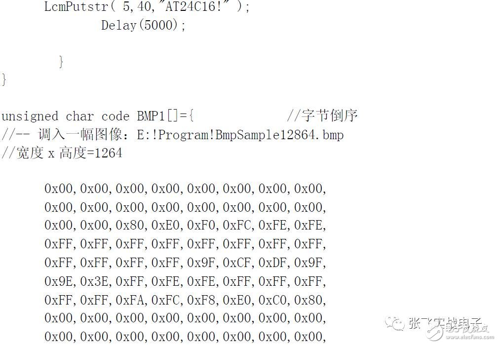 从上图可以看出数据按字节在屏幕上是竖向排列的。上方为低位,下方为高位。因此在横向上(也就是Y)就一共是128 列数据。分为CS1 和CS2 两个64 列来写入。在竖方向上(也就是X)一字节数据显示8 个点,竖向64 个点分为8 个字节,称做8 页(X=0-7)。了解这些后我们就知道要满屏显示一张图就要从y=0…127、X=0…7 一共写128×8=1024 个字节的数据。同样在AT89S51 中存一张图就要1024个字节的空间。