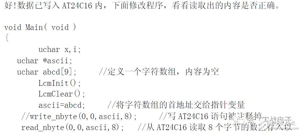 你如果把265 个字节的数据往AT24C02 进行写页操作,它也不报错,就一个劲地反复覆盖你8 个字节的空间,再比如你往AT24C256 里输入一个字节的地址,或往AT24C02 里输入两个字节的地址,它也不报错,就这么胡乱地把地址当数据或把数据当成地址往里一阵乱写。当你读取数据时才发现里面混乱不堪。这使得上面那个读写AT24CXXX 器件的程序怎么运行都不会出错。我觉得这是AT24CXX器件设计上比较弱智的地方。