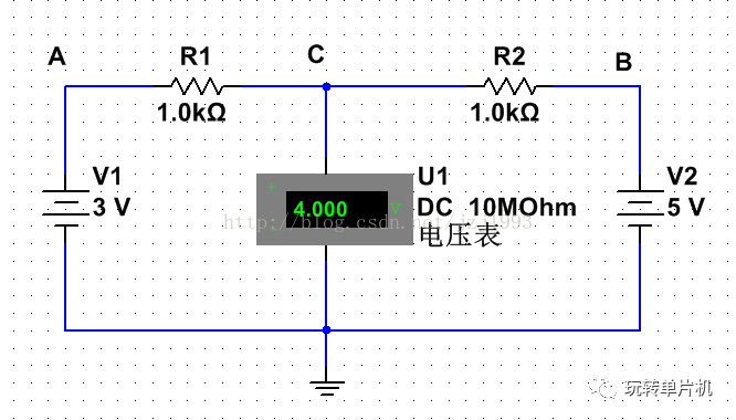 在这个电路中,电阻R1=R2,我给A、B两点分别接入3V和5V电压,这个时候,C点的电压则为(5+3)/2=4V。这个电路完成了一个求平均值的操作,如果我们用1V表示数字1,它计算出来3和5的平均值是4;如果我们定义1mV表示数字1,这个电路就计算出了3000和5000的平均值是4000。如果我能通过巧妙的方法,利用电阻电容乃至晶体管等元器件的特性,设计出很多类似这样的电路,它就可以完成很复杂的四则运算,以及平方、开方、对数等运算。这就是通过电路来帮助我们进行数学计算的简单例子。在这个例子中,并不见得能体现到电路计算相比于我们用笔纸计算的优势。但是如果我们把电路做的足够复杂,它的计算速度是相当快的,并且只要有电能供应,它就永远不知疲倦的计算,而且不容易出错。