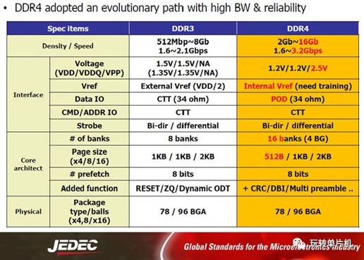 以下两张图可以清晰对比DDR3以及DDR4的参数差异: