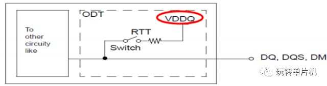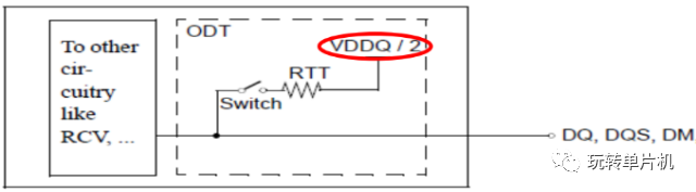 POD作为DDR4新的驱动标准,最大的区别在于接收端的终端电压等于VDDQ,而DDR3所采用的SSTL接收端的终端电压为VDDQ/2。这样做可以降低寄生引脚电容和I/O终端功耗,并且即使在VDD电压降低的情况下也能稳定工作。其等效电路如图1(DDR4), 图2(DDR3)。