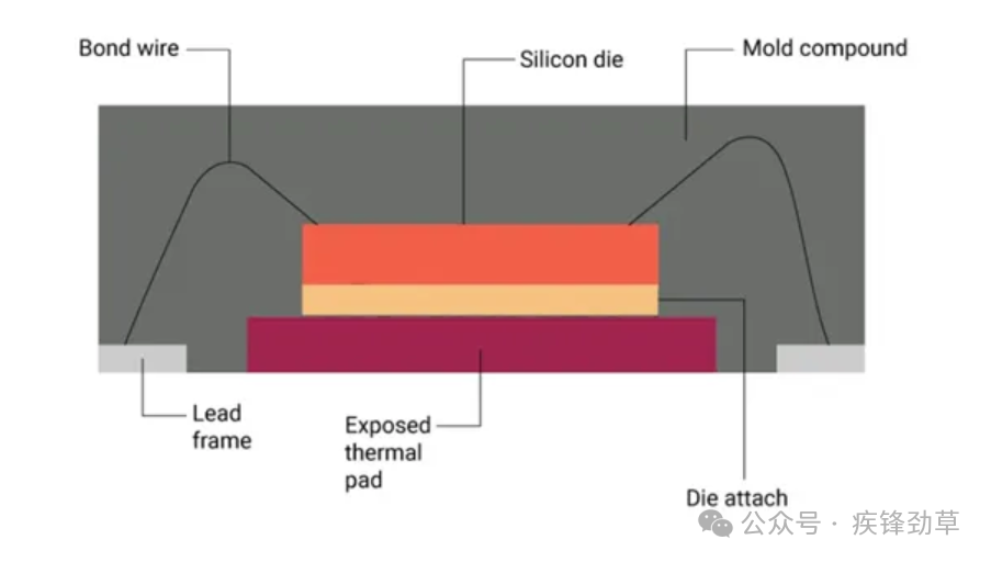 QFN是方形扁平无引脚封装的缩写,它是一种表面贴装技术,用于集成电路的封装。QFN封装有一个由引线框架包围的模具(由铜合金与亚光锡涂层制成)。芯片和框架通常通过线键连接在一起。铜/金是焊丝粘合的首选材料。一些制造商使用倒装芯片技术来实现这种互连。与传统技术相比,倒装芯片技术提供了更好的电气性能。底部是金属化的端子垫,它们沿着底部的四个边缘存在,并为PCB提供电气互连。QFN封装底部的外露衬垫提供与PCB的电路连接,同时提供有效的传热。连接引脚将芯片牢牢地固定在衬垫上的环氧树脂材料中。