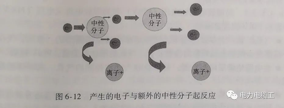 约含有80%氮气的空气的降解可能会导致形成离子和其他有氮的(例如氮氧化物)降解产生物一旦产生新形成的离子和电子,它们会继续这个过程;攻击空隙中剩余的空气,如图6-12所示。