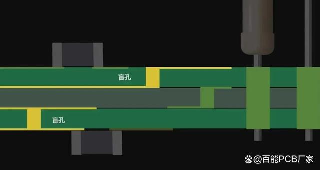 盲孔与通孔类似,但是盲孔只有部分穿过PCB,将外层铜层连接到内部,而不会穿过PCB,盲孔非常适合空间有限的多层PCB。