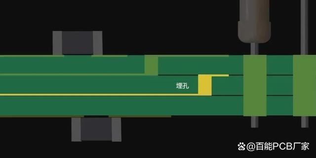 埋孔完全隐藏在PCB的各层内部,连接PCB的2个或者多个内部铜层。非常适合空间限制比较高的高密度PCB。