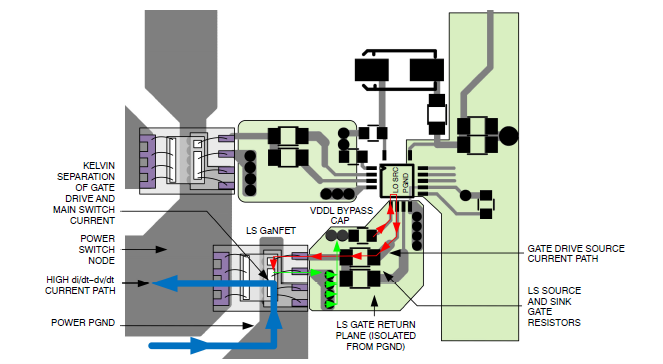 本设计文档其余部分引用的布线示例将使用含有源极开尔文连接引脚的 GaNFET 封装。