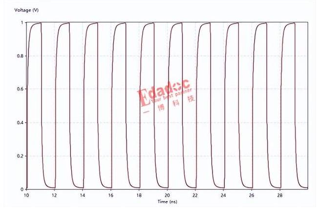 上图是做了端接处理后远端接收到的信号波形。可以看到反射被消除了,接收端的信号幅度为信号源输出信号电压1V,且信号波形比较完整。