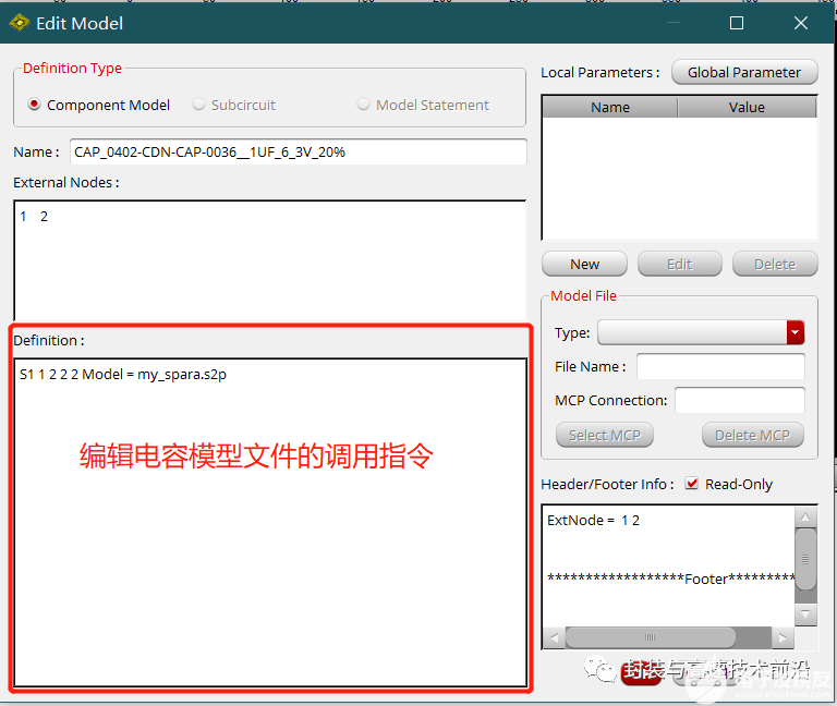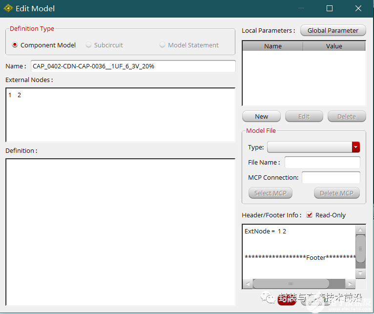 c. SPICE模型(.ckt/.mod/.sp等):如果是SPICE的电容模型文件,可以通过右侧Model File栏进行导入