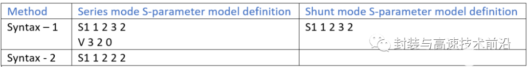 S参数电容模型分串联(Series)和并联(Shunt)测量两种(Sigirty安装目录中的电容模型均为串联),节点与port的连接语法见下表。