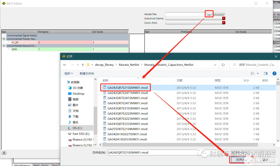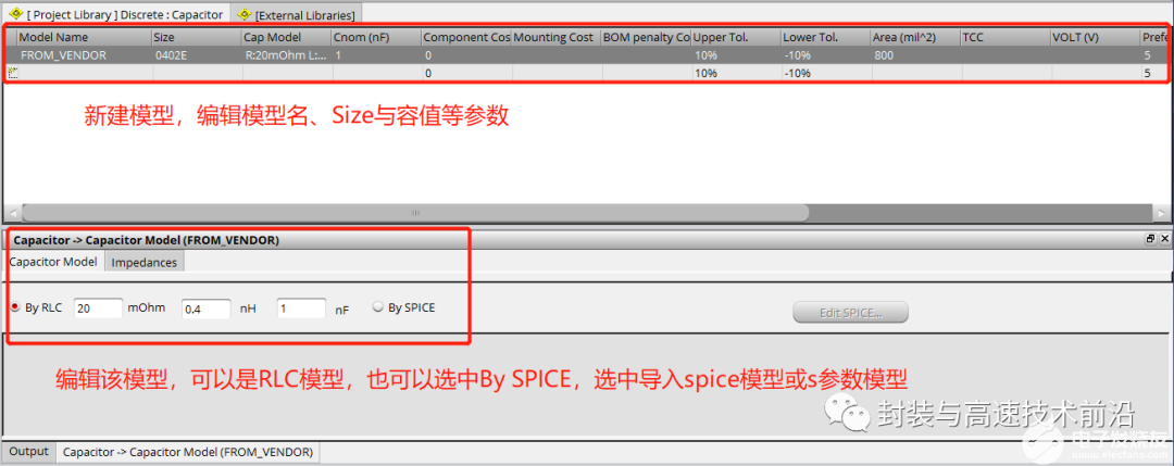 3) 在Model编辑界面,创建或导入去耦电容模型的方法如下