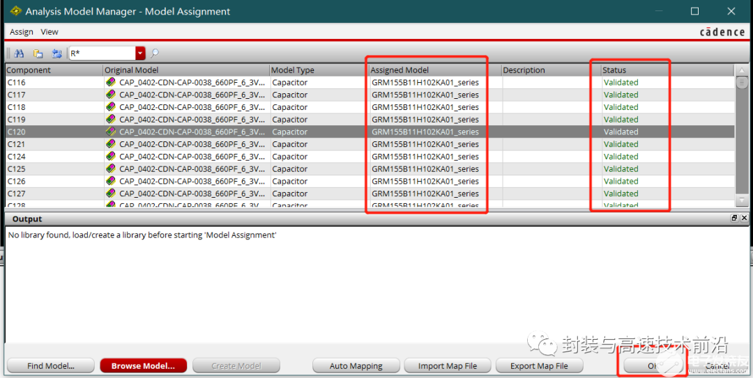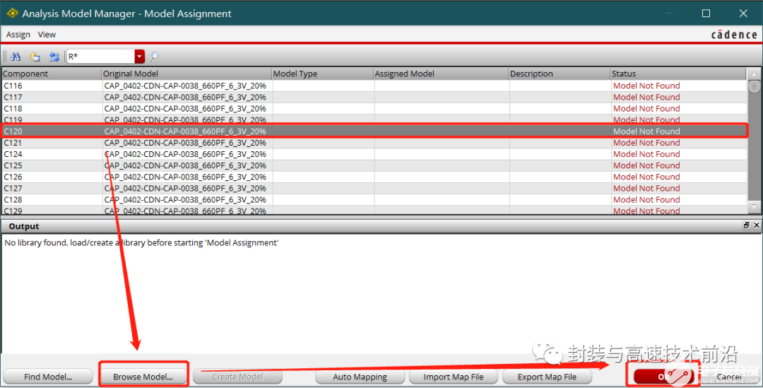 1) 在PowerSI流程界面,点击Assign Capacitor Models,打开AMM的Model Assignment界面,选中一个要附模型的电容,点击Browse Model → OK ,然后就打开了AMM管理器