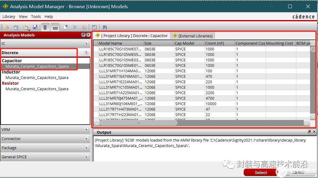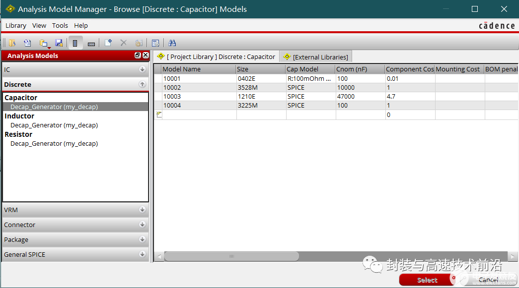 b. 选择External Libraries,可以导入Sigrity安装路径下的各电容库,也可导入其他项目的电容库,作为external库使用。