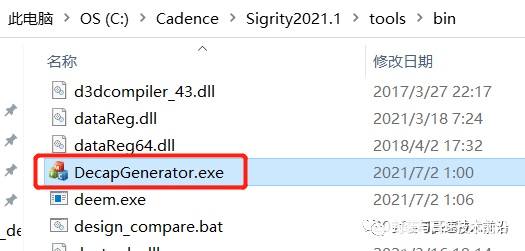 1) 打开DecapGenerator.exe,具体路径在Cadence – Sigrity xxxx – tools – bin文件夹中