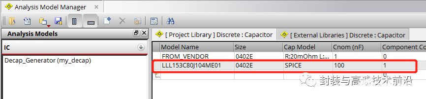 Sigrity中添加、导入、应用电容模型的方式主要有两种,一种是在Component Manager器件管理器中进行操作,一种是在Sigirty统一的模型管理模块AMM中操作,具体地,参考下面的步骤。